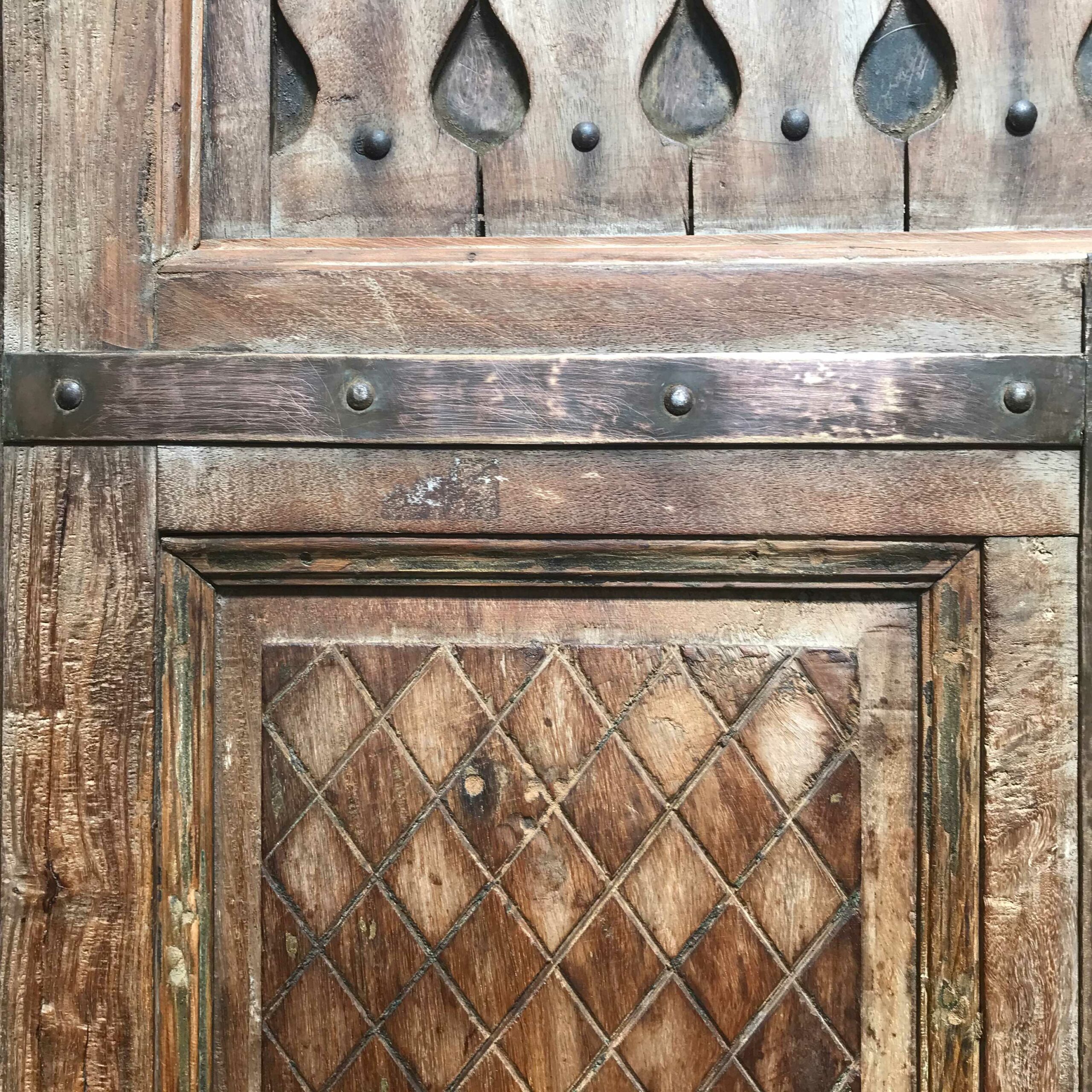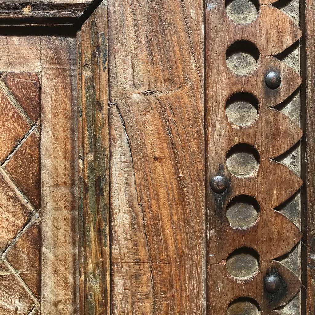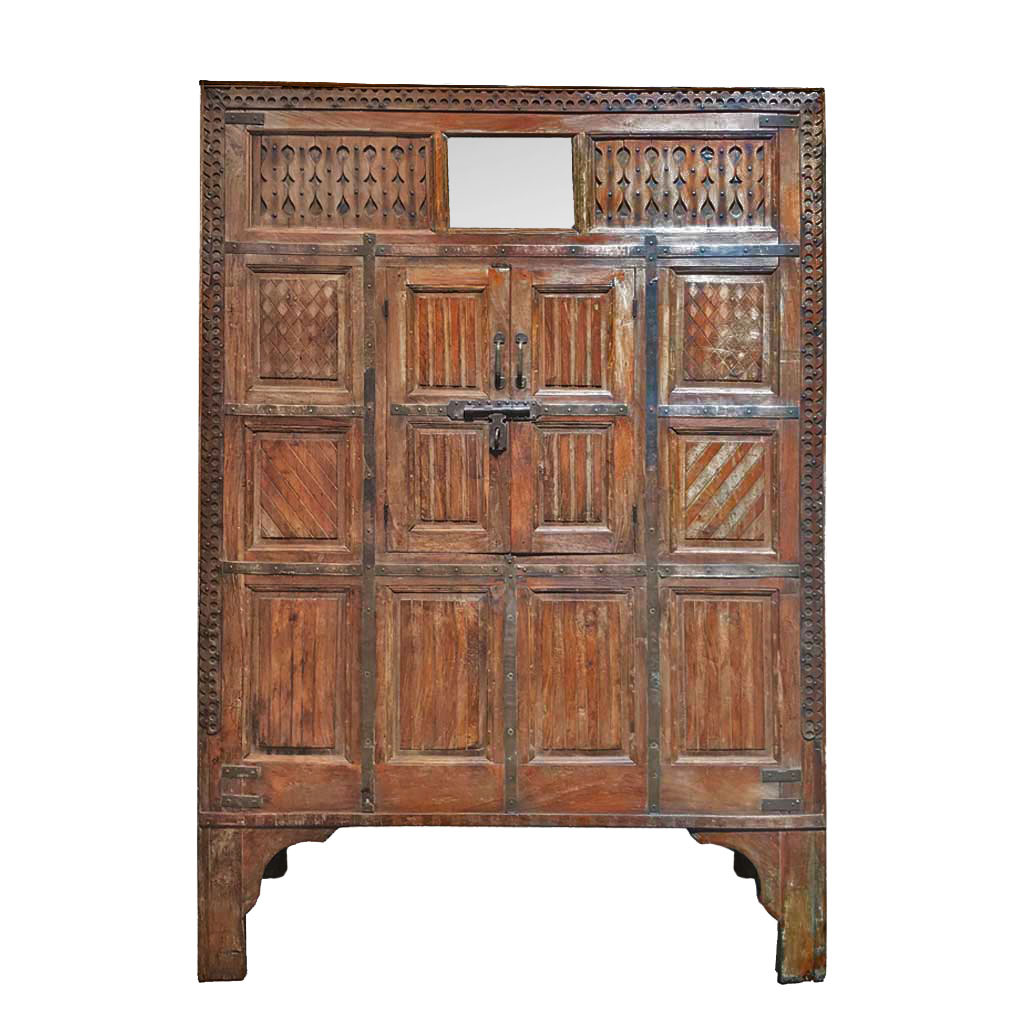 El armario Bada es originario de Shekhawati una de las regiones más fascinantes de Rayastán. Pueblos que esconden bellas pinturas bajo el polvo, o havelis en ruinas que aún albergan algún tesoro. De ahí es nuestro armario Bada, elaborado por manos maestras que tallaron la madera creando bellos motivos geométricos decorados con travesaños de fino cobre remachado y un espejo en la parte superior. Una pieza antigua, especifica de la zona, singular por su interior, que consta de un espacio y un estante que bordea el interior de sus paredes, único en todos los sentidos, estético, cultural, artesanal...