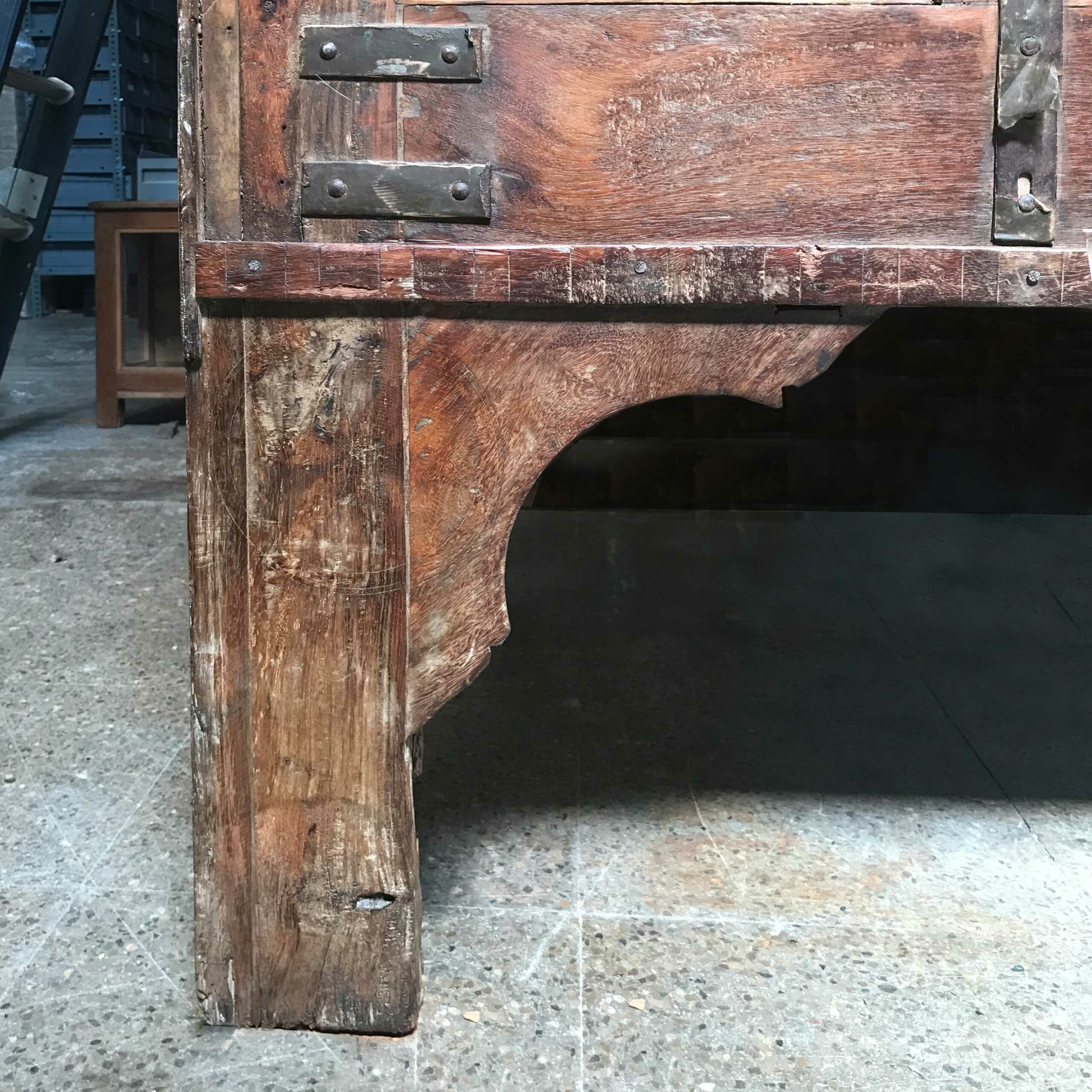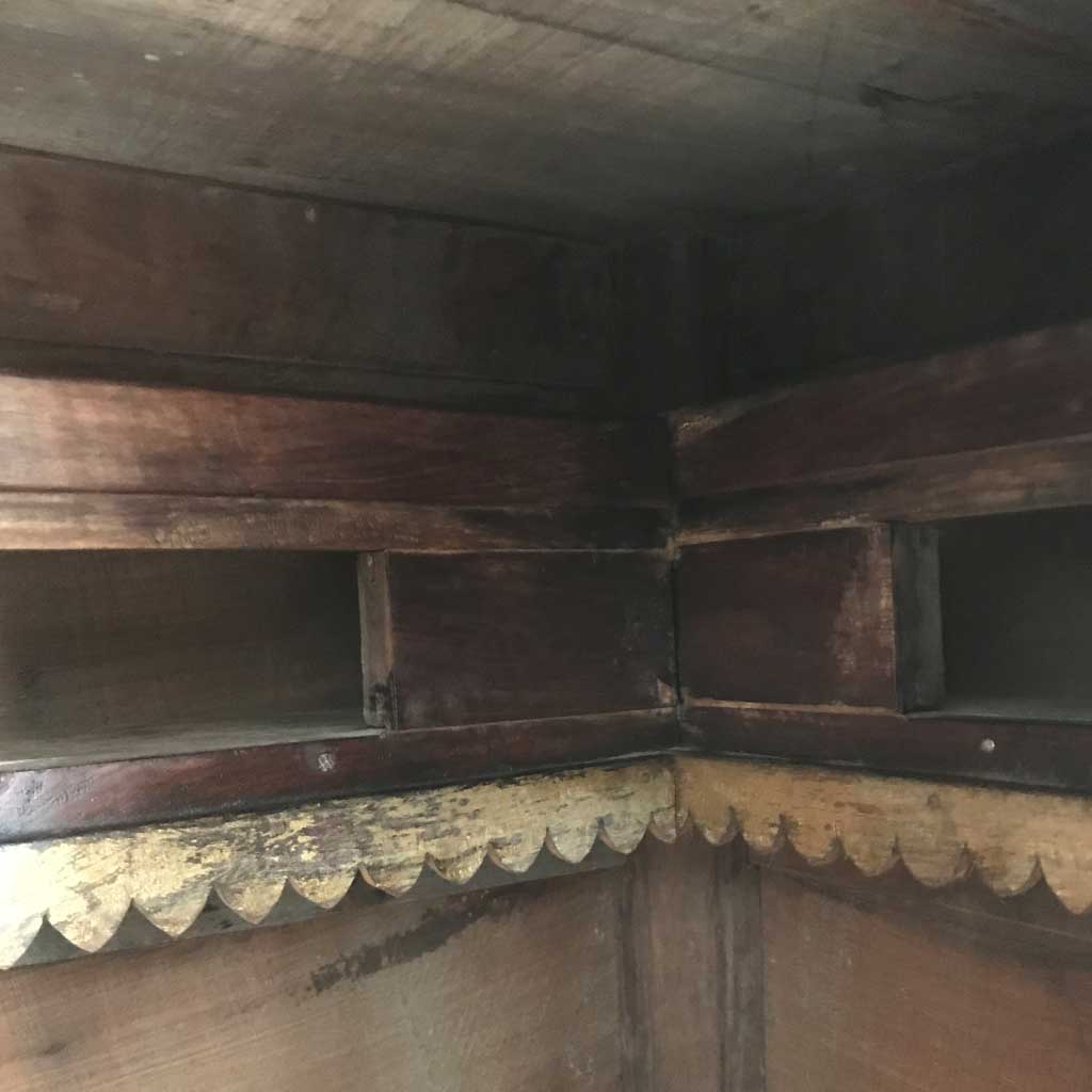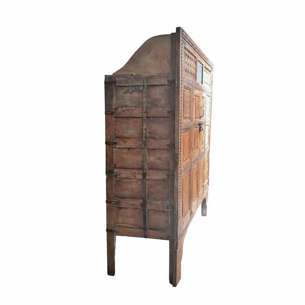 El armario Bada es originario de Shekhawati una de las regiones más fascinantes de Rayastán. Pueblos que esconden bellas pinturas bajo el polvo, o havelis en ruinas que aún albergan algún tesoro. De ahí es nuestro armario Bada, elaborado por manos maestras que tallaron la madera creando bellos motivos geométricos decorados con travesaños de fino cobre remachado y un espejo en la parte superior. Una pieza antigua, especifica de la zona, singular por su interior, que consta de un espacio y un estante que bordea el interior de sus paredes, único en todos los sentidos, estético, cultural, artesanal...
