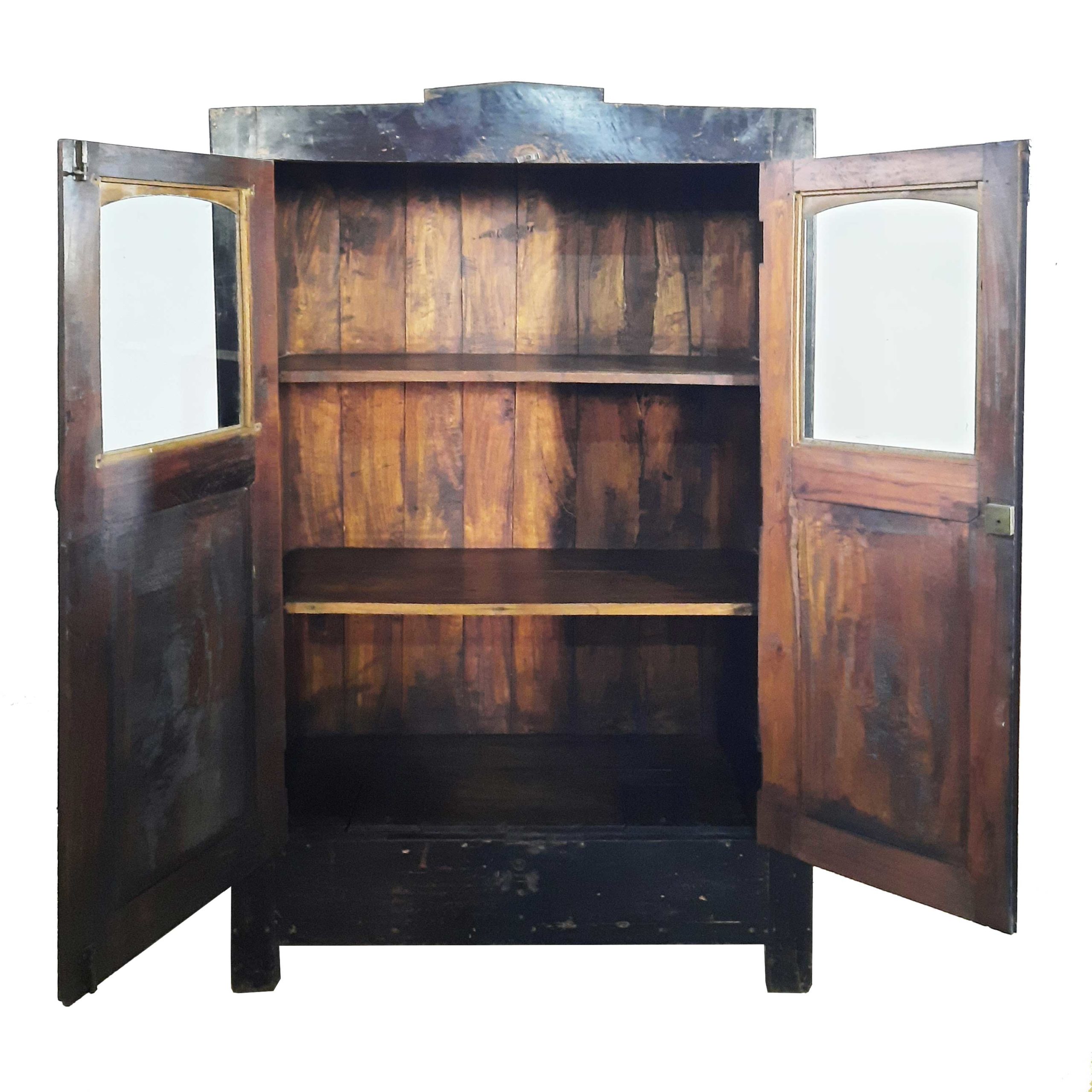 Las diferentes patinas que han quedado, tras años de pintura, dan lugar a un tono casi negro con matices berenjena o ciruela, según le da la luz.