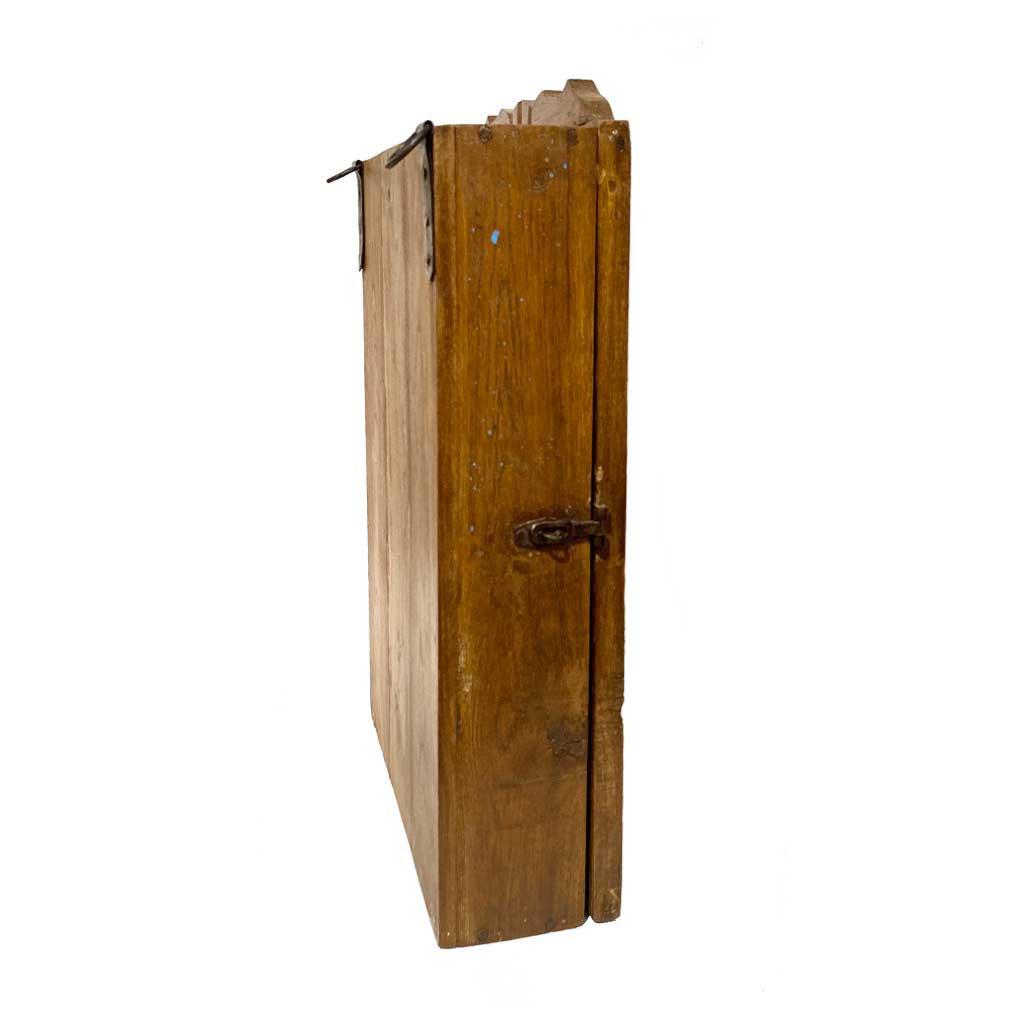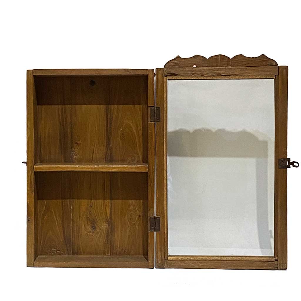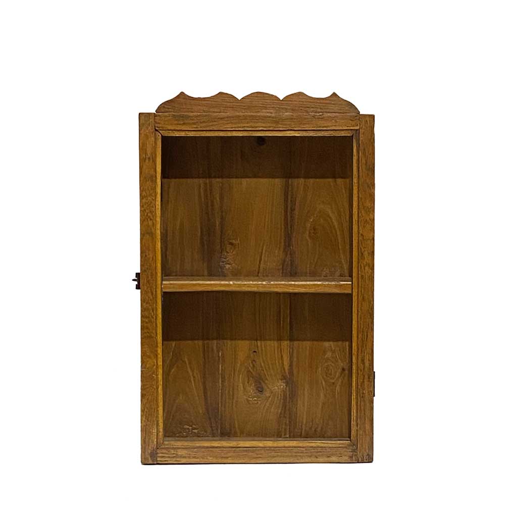 Vitrina Terah, pequeña vitrina vintage en madera tropical que enmarcará la exposición y resaltará sutilmente con su pequeña cornisa.