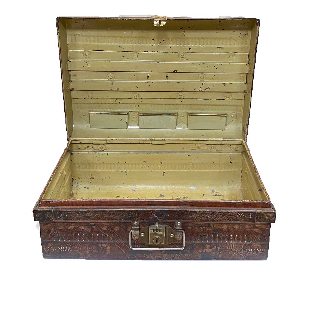 Maleta vintage Ref. 8KA13, pieza única, recuperada entre tantos objetos que recorrieron mundo y que guardaron silencio en trenes, barcos y demás transportes imaginables. Objetos como estas maletas que protegieron enseres personales y que quieren seguir haciéndolo aquí, tras otro largo viaje.