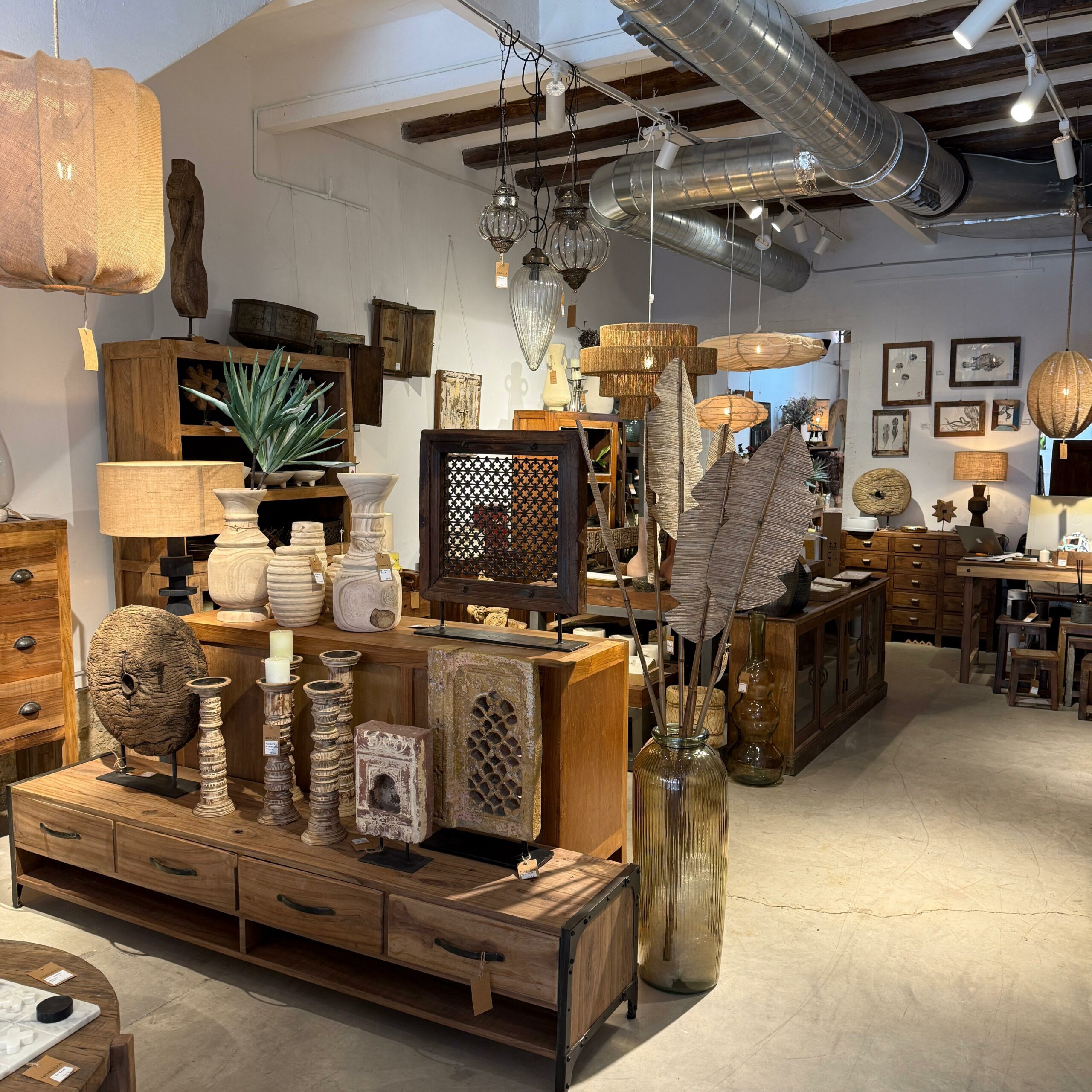 Una tienda y showroom exponiendo las piezas únicas, muebles y objetos de decoración importadas por Casa Azul. En conjunto y en el mismo espacio, la "Galería Mateu" es un lugar de creación, exposiciones, talleres.